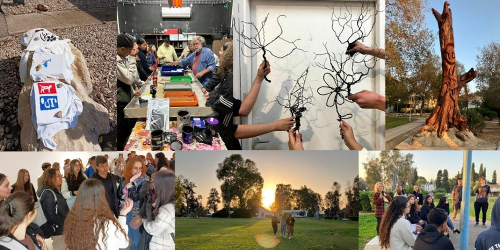Students and staff were given an introduction to Givat Haviva and its values, as well as a tour of the sculptural area and guidance through the exhibition showcasing the voices of young Arab and Jewish artists who had completed a joint residency program at Givat Haviva.