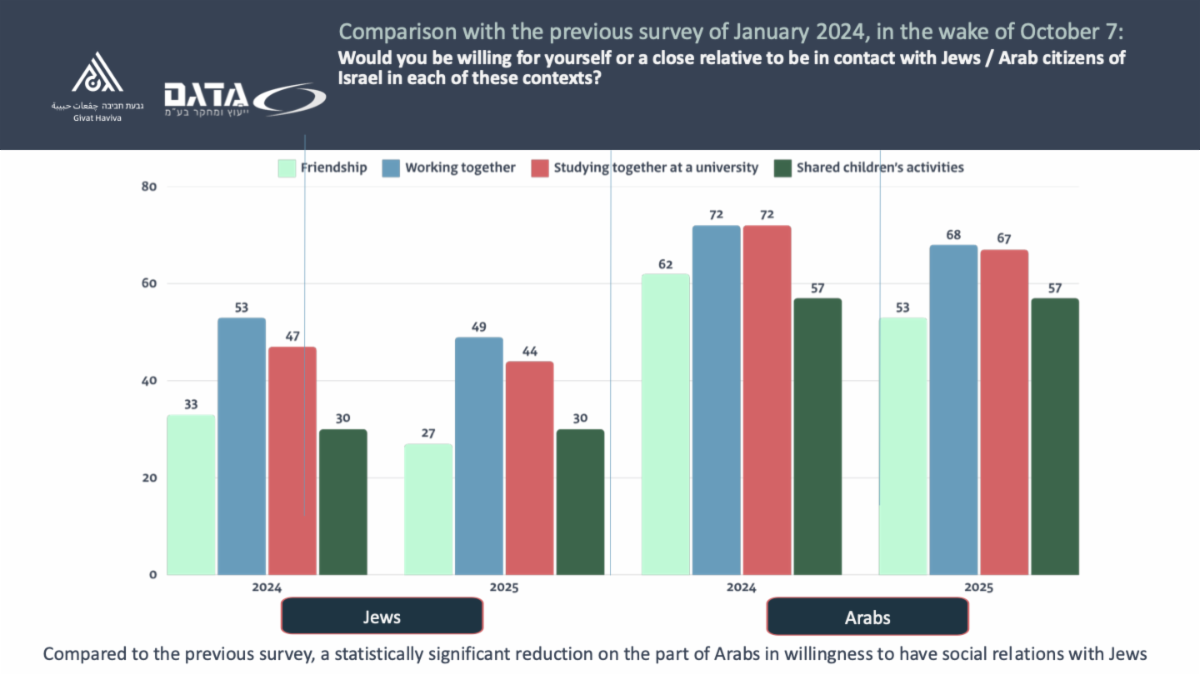 This is our reality. Within it, we must choose whether to fight and promote the possibility of a better future, or to surrender to racism, violence, and abandonment, and watch Israel sink. You are invited to Givat Haviva if you choose the first path. In this month’s update, you’ll see our wonderful joint Jewish-Arab team leading educational initiatives, participating in conferences, and receiving recognition for years of work in the complex field of shared society education. You’ll see educators and school principals, who face resistance but still bring their students to Givat Haviva for programs in democracy and equality. You’ll see 150 youth from Israel and around the world studying at our International School, willing to spend their evenings learning about the state of Israeli democracy and how to protect democracies elsewhere. You’ll see 10 young Jewish and Arab artists who took part in our residency program, living and working together for three months and now presenting a joint exhibition at the Givat Haviva gallery.